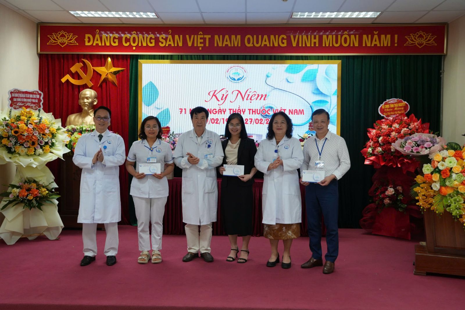 Cũng nhân dịp này, để kịp thời động viên những nỗ lực trong công tác chuyên môn, Giám đốc Bệnh viện Đa khoa Bắc Kạn đã quyết định trao thưởng cho 04 tập thể và 03 cá nhân có thành tích xuất sắc trong dịp thi đua kỷ niệm 71 năm ngày truyền thống Ngành Y tế. Đây là những điển hình tiên tiến, luôn đi đầu trong phong trào thi đua, có nhiều đóng góp quan trọng trong việc nâng cao chất lượng khám chữa bệnh và tinh thần thái độ phục vụ nhân dân tại đơn vị.