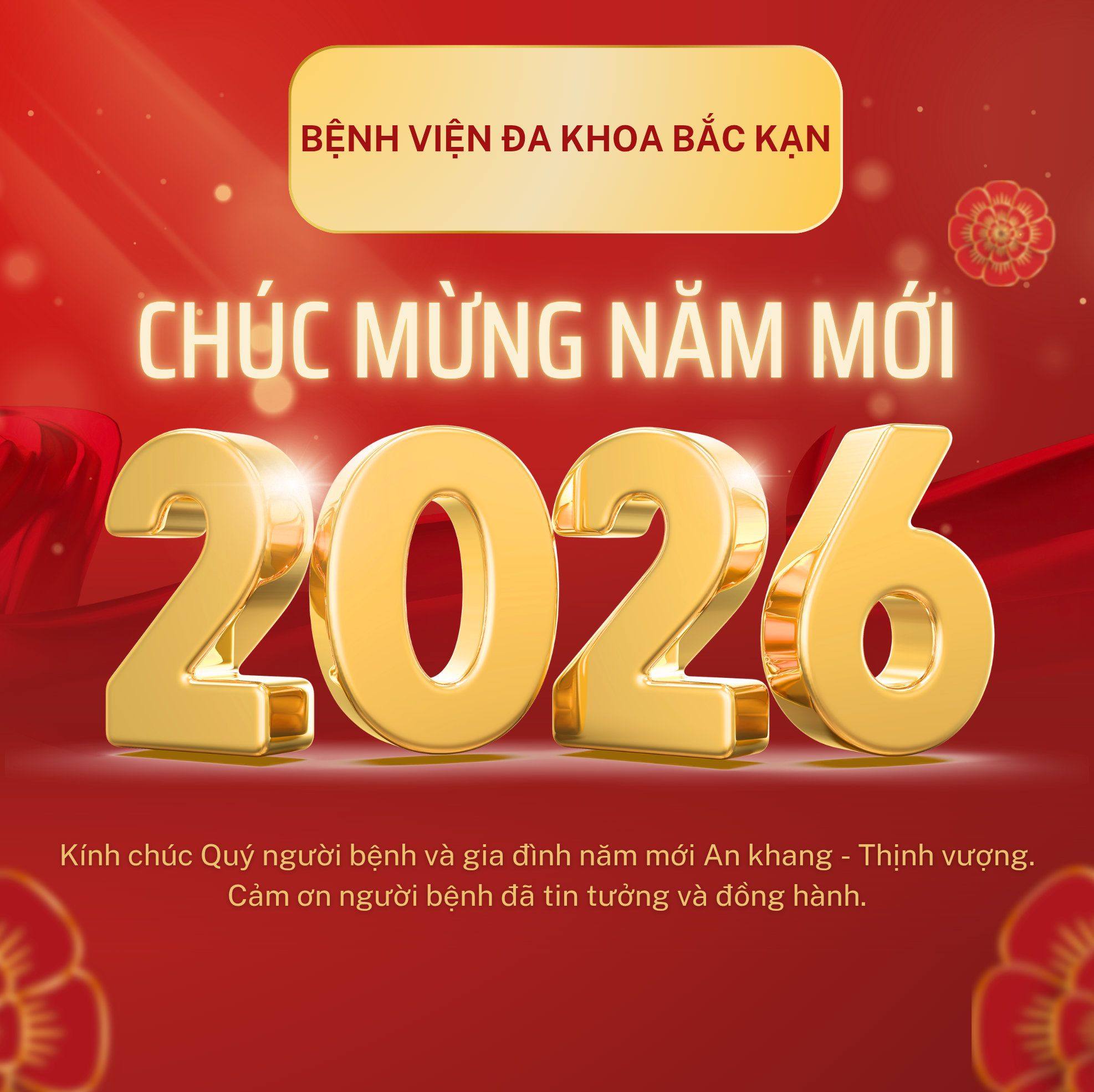 Bệnh viện Đa khoa Bắc Kạn xin gửi lời chúc mừng năm mới tới Quý người bệnh và gia đình!