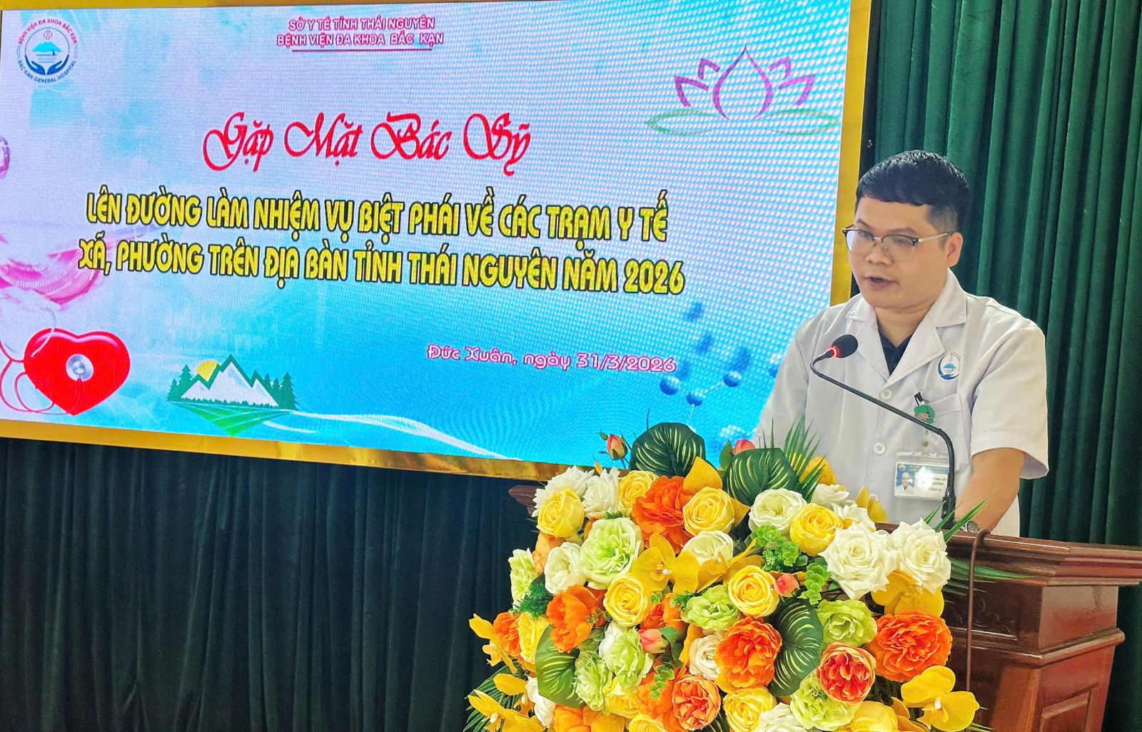 Ngày 31/3/2026, Bệnh viện đa khoa Bắc Kạn tổ chức chương trình “Gặp mặt bác sỹ lên đường làm nhiệm vụ biệt phái về các trạm y tế xã, phường trên đại bàn tỉnh Thái Nguyên năm 2026” Đây là hoạt động ý nghĩa nhằm động viên, giao nhiệm vụ và thể hiện sự quan tâm của Lãnh đạo đơn vị đối với các đồng chí nhận nhiệm vụ.