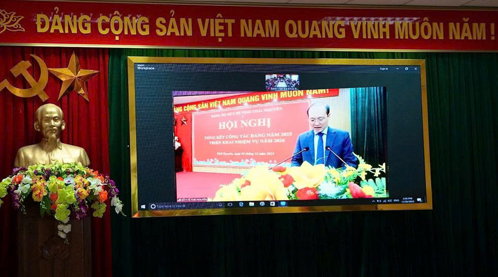 Chiều ngày 26/12, Đảng bộ Sở Y tế tỉnh Thái Nguyên tổ chức Hội nghị trực tuyến tổng kết công tác Đảng năm 2025 và triển khai nhiệm vụ năm 2026. Đồng chí Đặng Ngọc Huy, Tỉnh ủy viên, Bí thư Đảng ủy, Giám đốc Sở Y tế chủ trì Hội nghị.