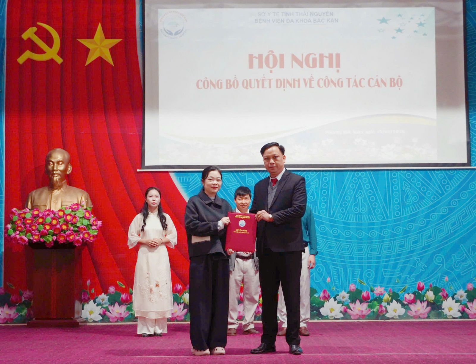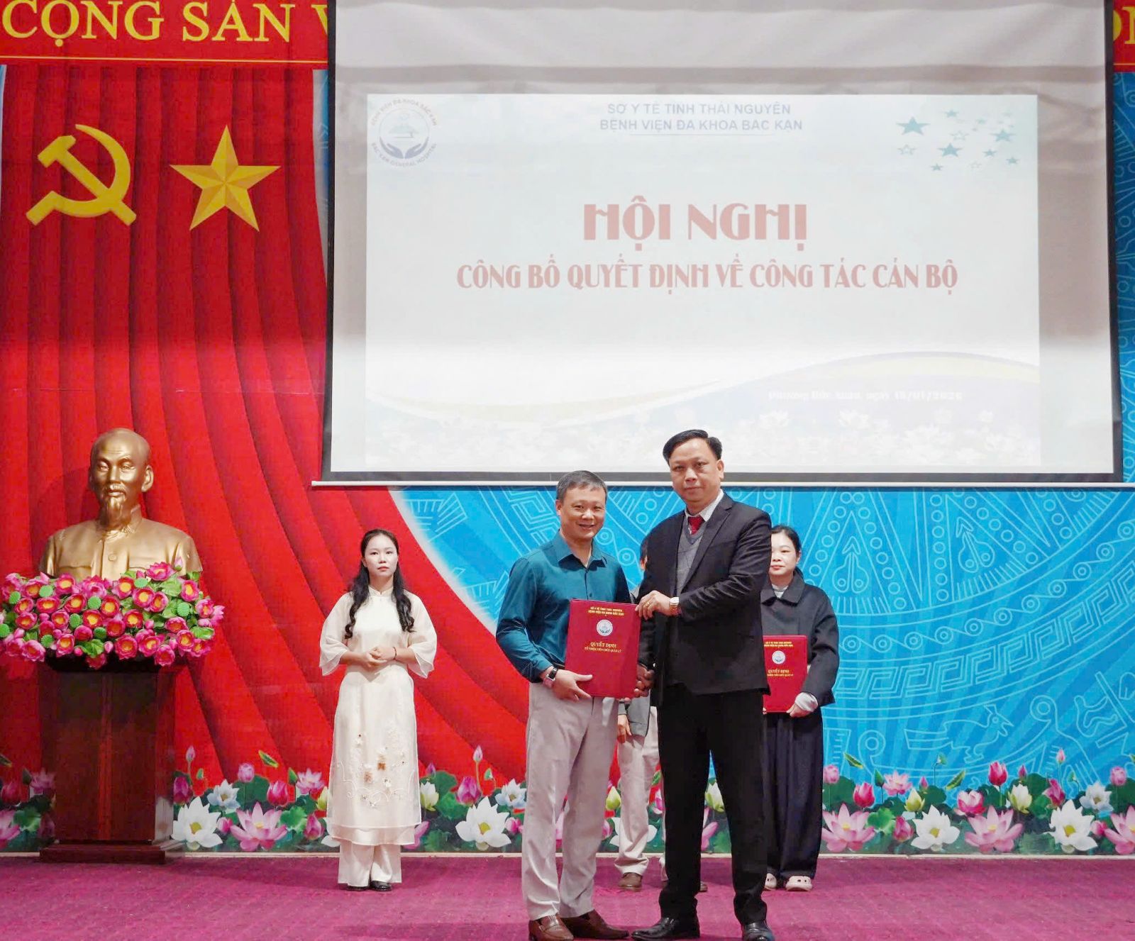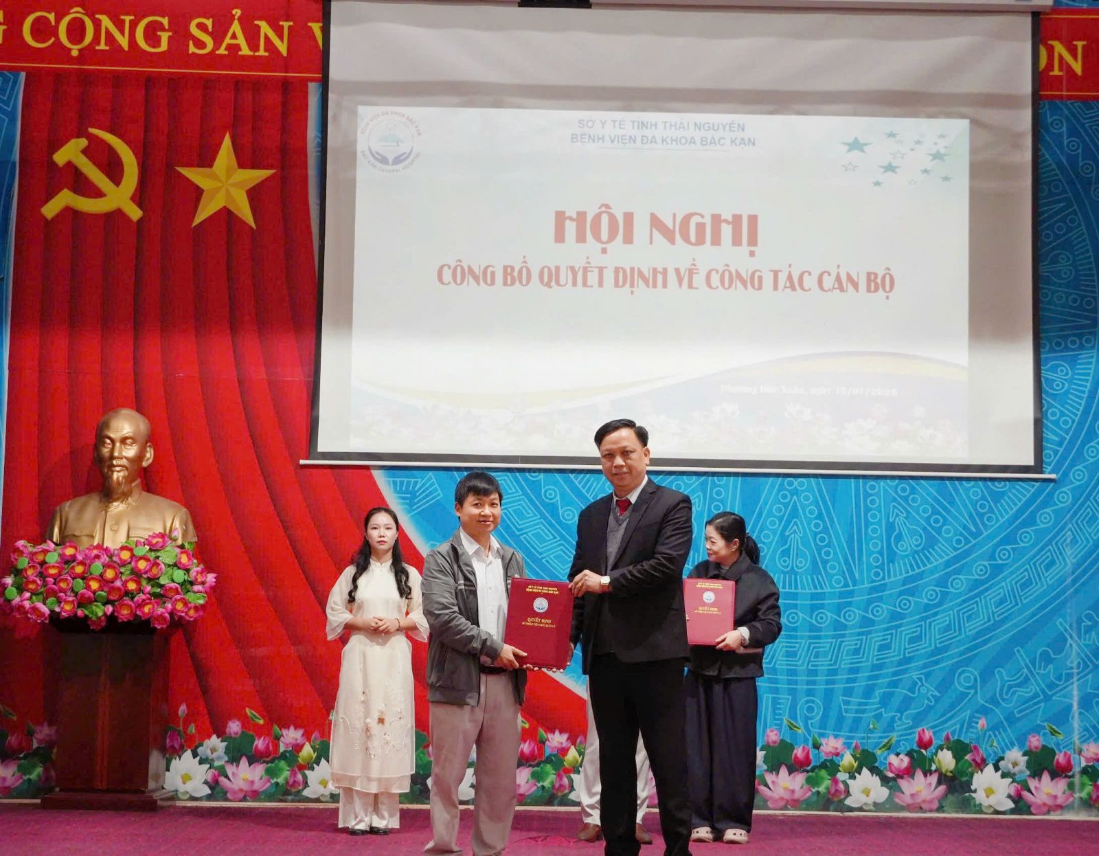 Nhằm kiện toàn bộ máy lãnh đạo, quản lý, đáp ứng yêu cầu phát triển và nâng cao chất lượng khám, chữa bệnh của Bệnh viện trong giai đoạn mới, chiều ngày 15/01/2026, Bệnh viện Đa khoa Bắc Kạn đã tổ chức Hội nghị công bố quyết định về công tác cán bộ. Tham dự buổi lễ có TTƯT .TS Hoàng Xuân Sơn – Bí thư Đảng ủy, Giám đốc Bệnh viện; các đồng chí trong Ban Giám đốc, cùng đại diện lãnh đạo các phòng, khoa và đông đảo viên chức, người lao động trong đơn vị.