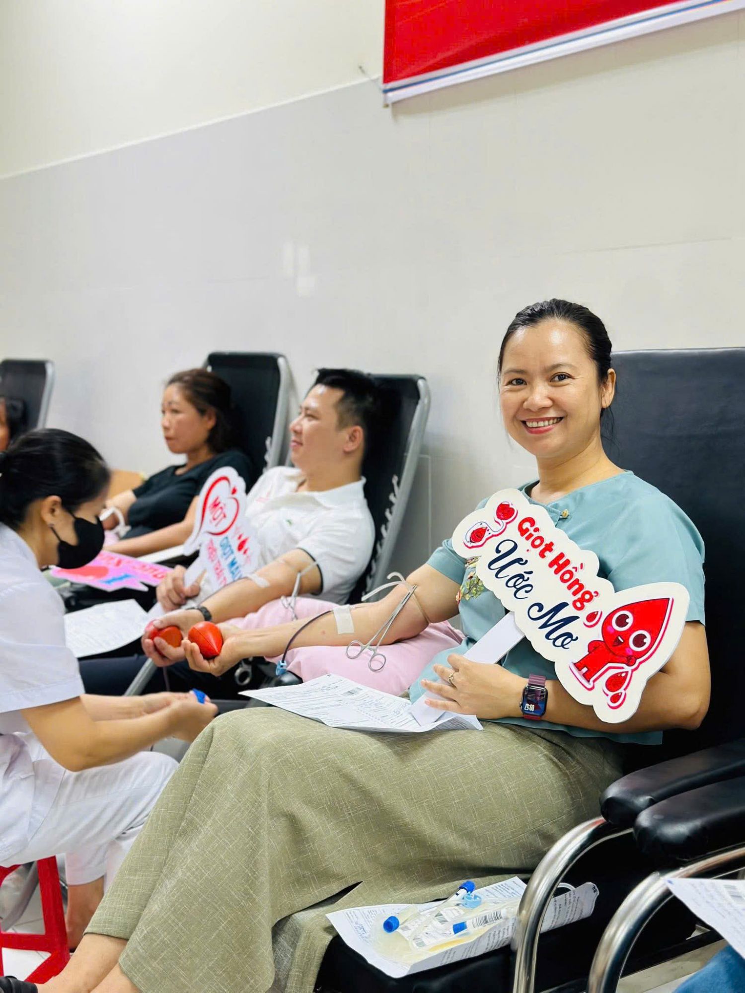 Để mỗi "giọt hồng" trao đi được vẹn tròn giá trị, công tác tổ chức đã được Ban Tổ chức chuẩn bị hết sức chu đáo. Các tình nguyện viên khi đến tham gia đều được đội ngũ y bác sĩ khám sàng lọc kỹ lưỡng, tư vấn sức khỏe và kiểm tra các chỉ số cần thiết, đảm bảo quy trình hiến máu diễn ra an toàn tuyệt đối. Chính sự chuyên nghiệp và tận tâm này đã tạo tâm lý yên tâm, phấn khởi cho hơn 100 tình nguyện viên đăng ký tham gia hiến máu tình nguyện trong buổi sáng hôm nay.