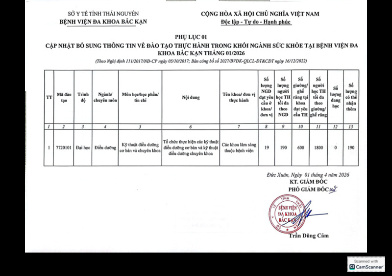 | Tiêu đề văn bản | Cập nhật bổ sung thông tin về đào tạo thực hành trong khối ngành sức khỏe tại Bệnh viện đa khoa Bắc Kạn | ||