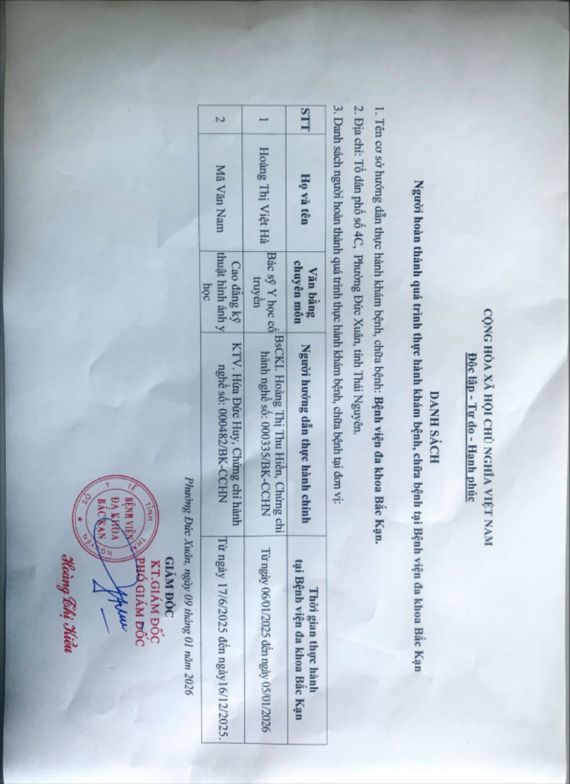 | Tiêu đề văn bản | Danh sách người hoàn thành quá trình thực hành khám bệnh, chữa bệnh tại Bệnh viện đa khoa Bắc Kạn | ||